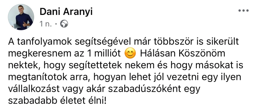 A Tanfolyamban megfogod tanulni az ő módszerüket is a jövőben nem leszel kiszolgáltatva az effajta szolgáltatóknak.